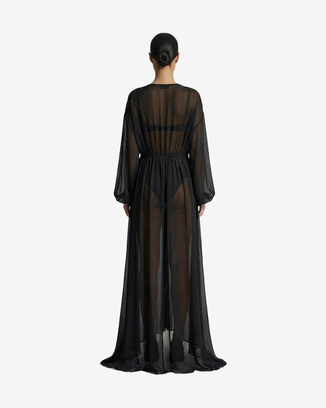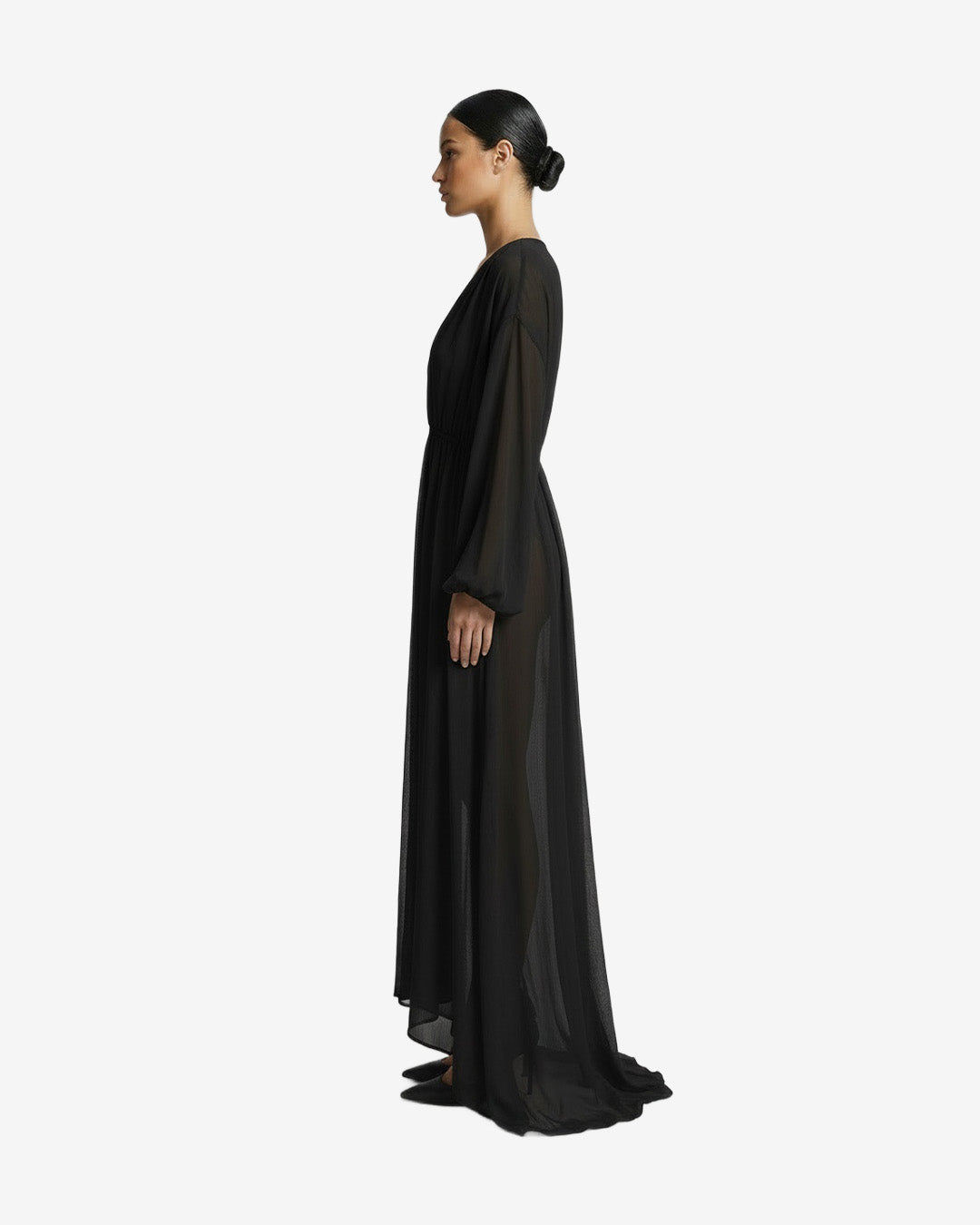 The Dreamland Black dress is designed for women who value freedom and a touch of effortless elegance. This unique dress is made from natural, transparent chiffon, giving it lightness and a subtle charm.
