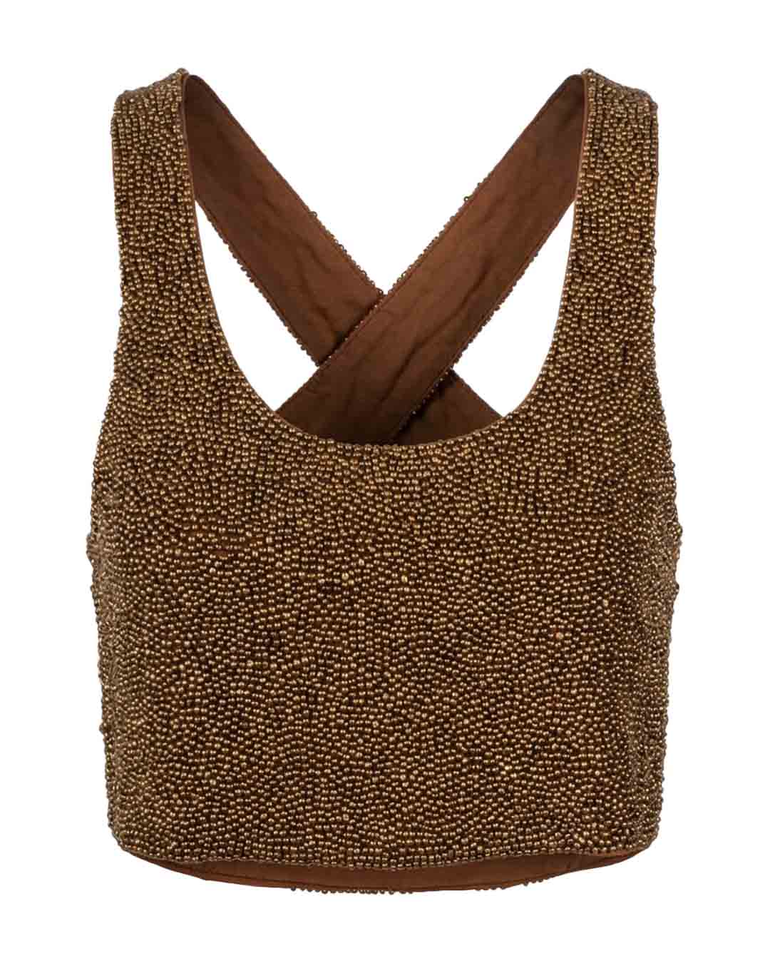 Beaded crop top made from acrylic beads and satin lining. This top crosses on the back. Making this top requires four to five days of hand beading work. Ethically produced in Bali using locally sourced premium quality materials.