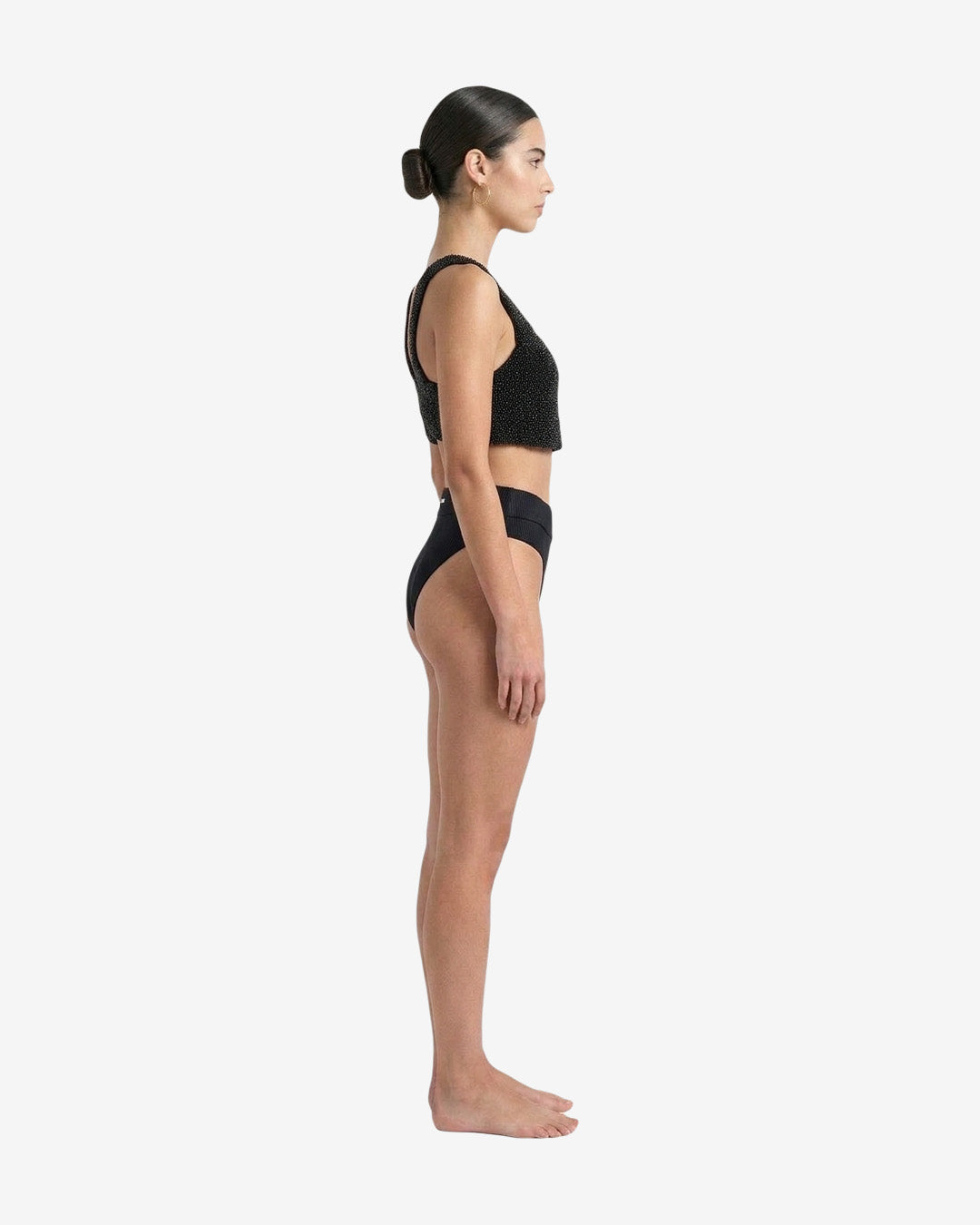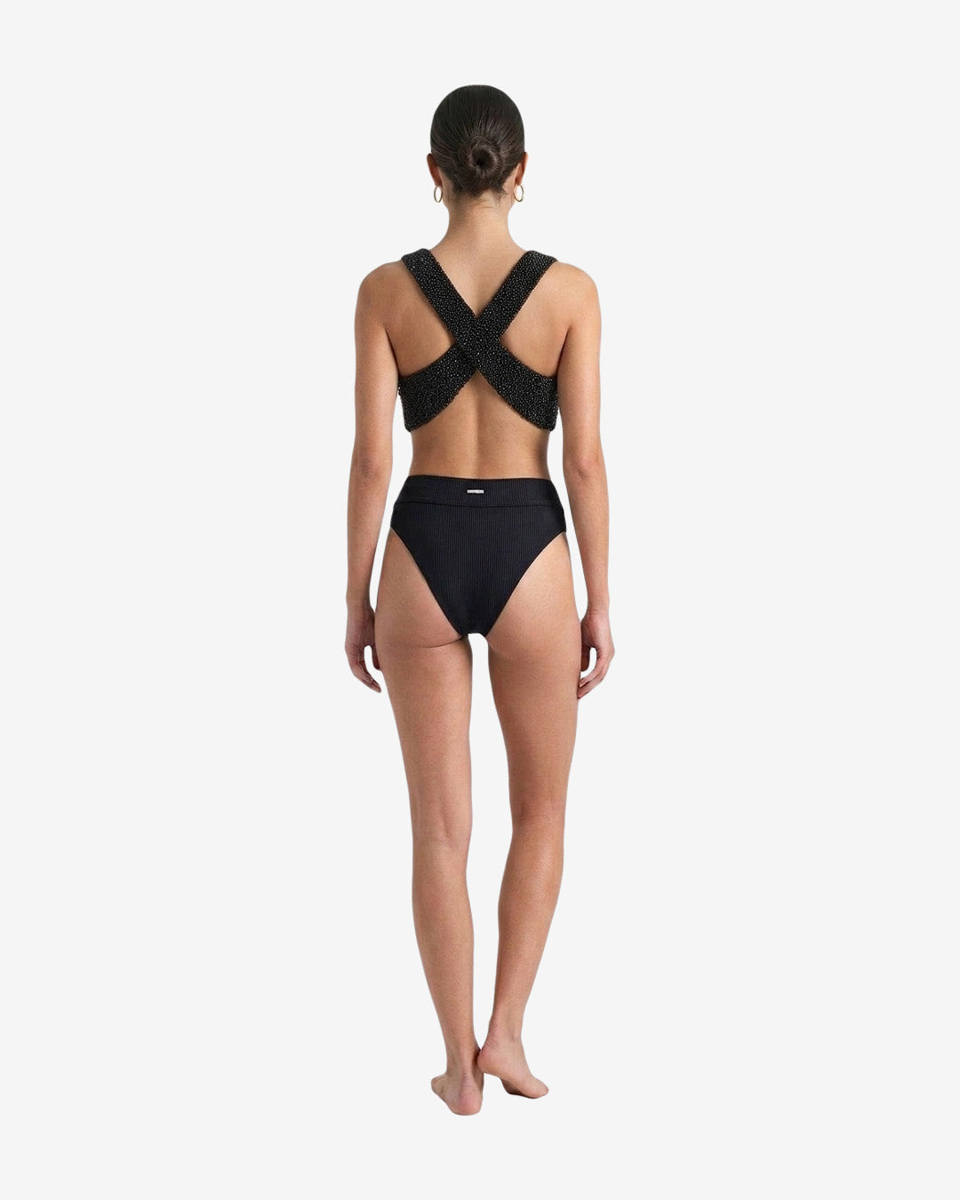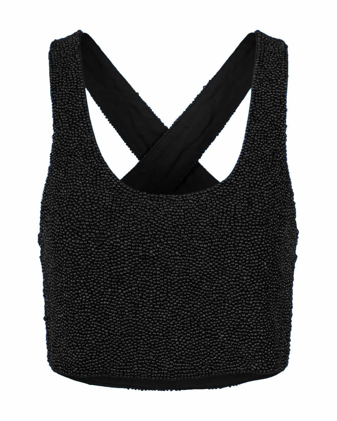 Beaded crop top made from acrylic beads and satin lining. This top crosses on the back. Making this top requires four to five days of hand beading work. Ethically produced in Bali using locally sourced premium quality materials.