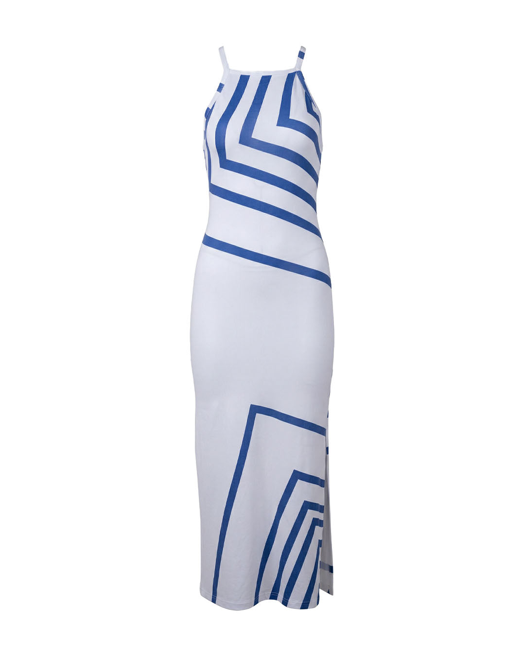 The Long Slit Dress in Asymmetrical embodies structure, sensuality, and flow — merging clean geometry with feminine curves. Crafted from soft spandex, this dress embraces your natural form while offering stretch and breathability. Its side slit elongates the legs, while the asymmetrical blue-on-white pattern creates movement and visual rhythm — like waves meeting architecture. Each piece is ethically handmade in Bali and attuned to the 528Hz frequency — the vibration of love, alignment, and renewal. A statement of confidence and clarity, this dress flows with your energy — bold yet grounded.