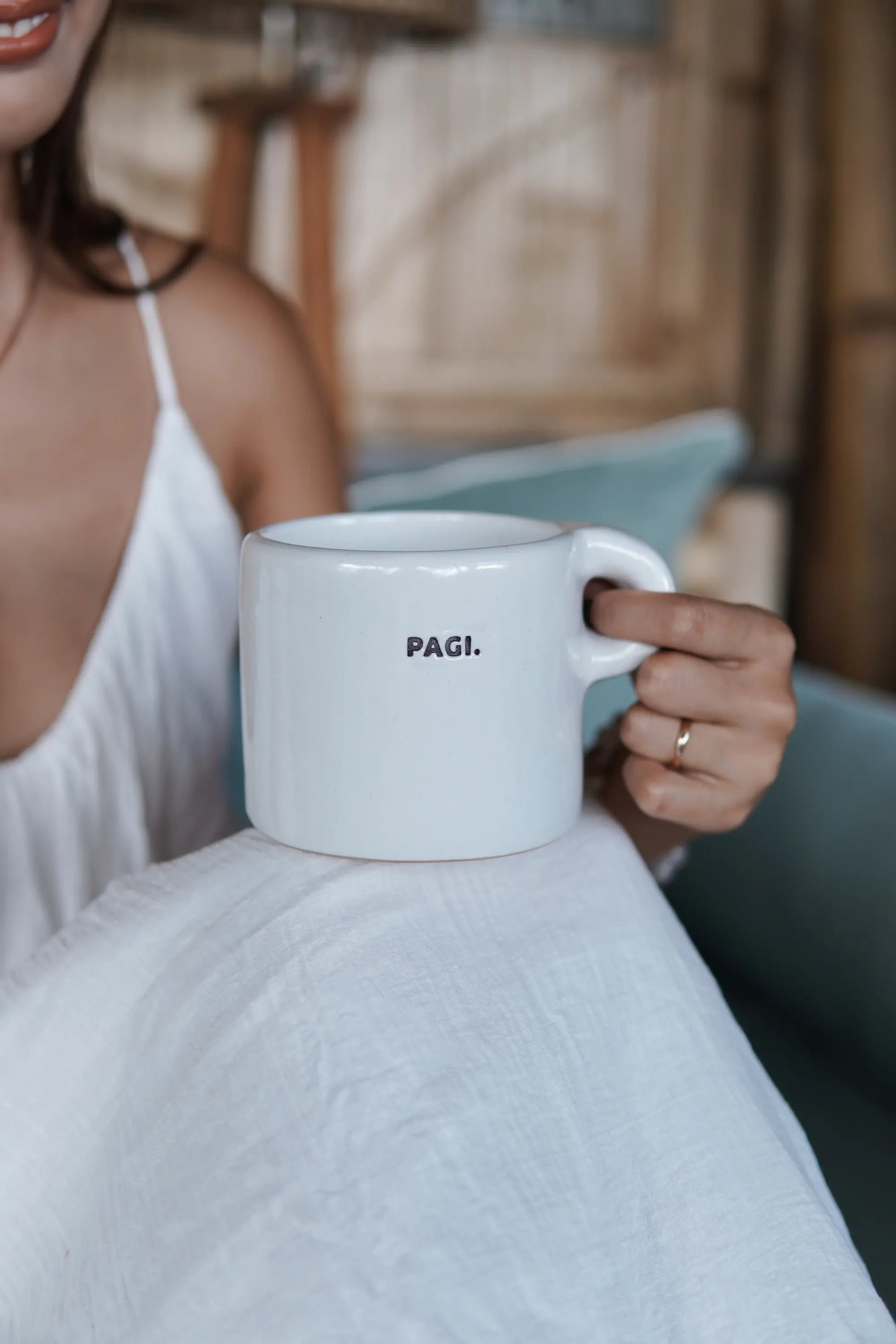 Handcrafted by local artisans, this stylish and eco-friendly mug is perfect for daily use or as a gift. Available in three designs: Pagi (Morning)