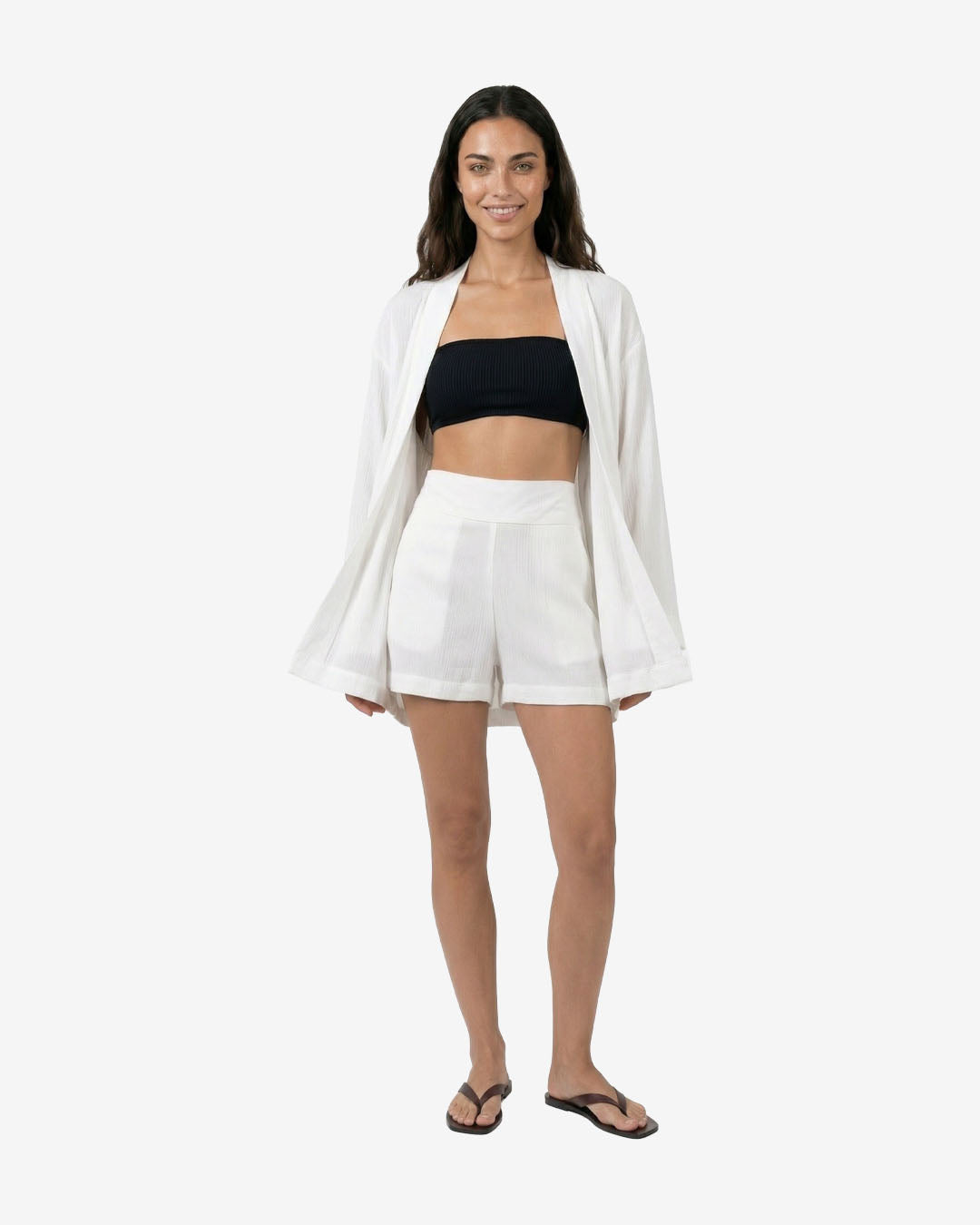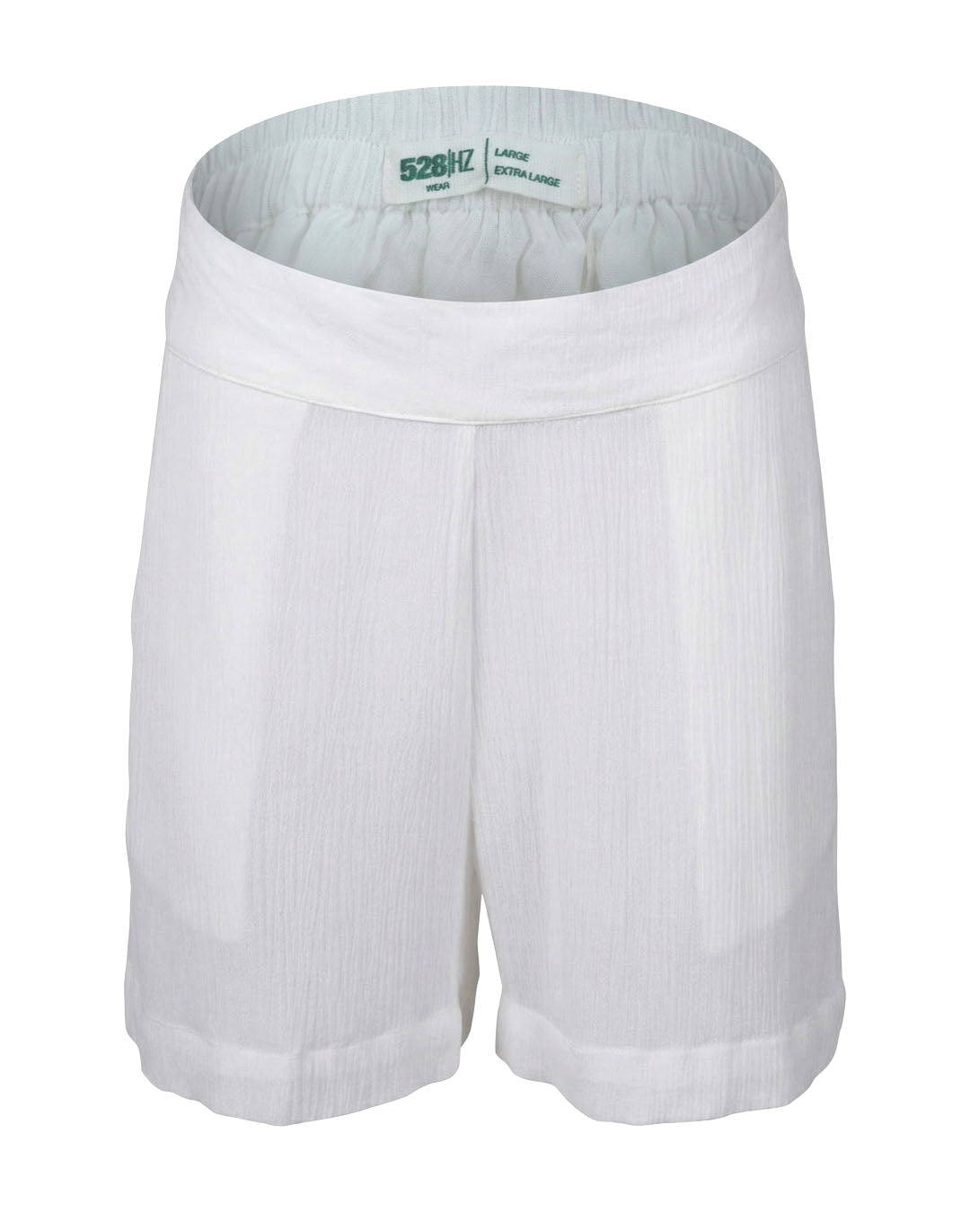 The Crinkle Short Pants in White are designed to move like air — light, soft, and endlessly versatile. Crafted from breathable Crinkle Rayon, they drape effortlessly with a fluid texture that flatters every shape. Made for slow mornings, barefoot walks, and sunset moments, their high-waist design creates a flattering silhouette while offering all-day comfort. Whether styled for resort escapes or mindful city days, these shorts embody 528Hz energy — the vibration of love, clarity, and calm.