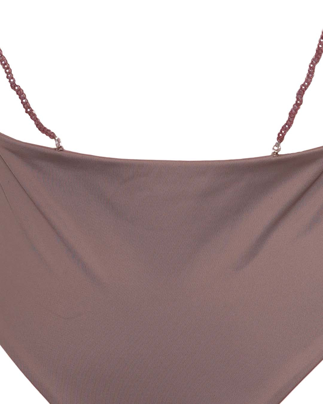 The Gab swimwear, designed for small busts with a plunging neckline, backless pearl details, and a thong-style bottom, offers a dazzling, elegant fit for Bali swimwear, stylish women’s swimwear Bali, luxurious luxury swimwear Bali, and eco-conscious sustainable swimwear Bali.