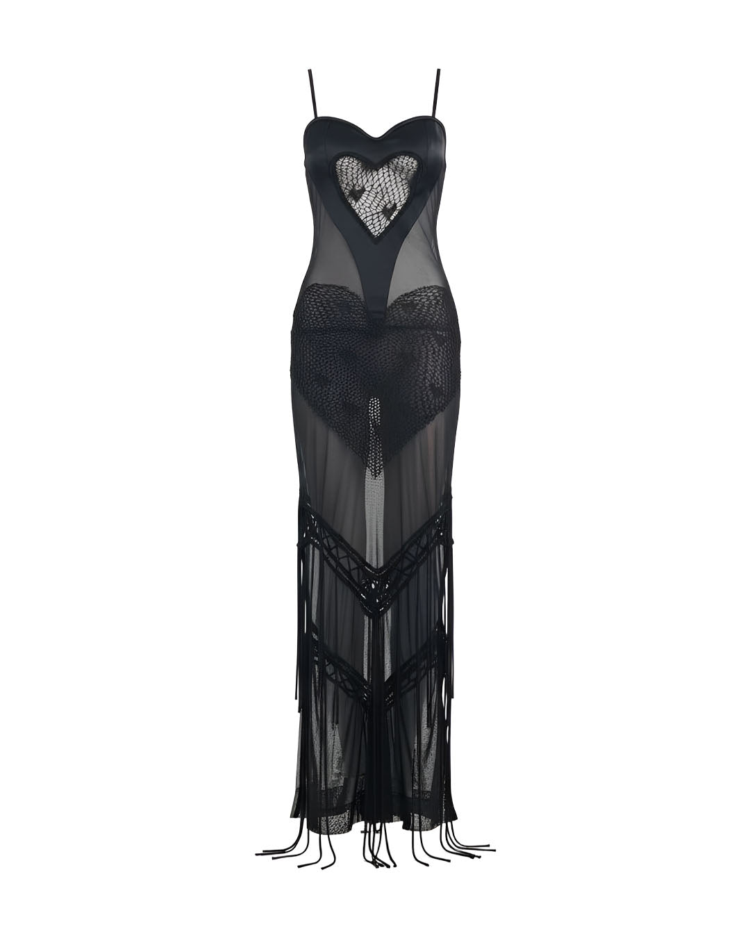 Featuring a heart-shaped design on the front and back, delicate heart lace embellishments, a center front cut out, and adjustable lace-up sides. The intricate V-shaped lace-up details at the hem give the option of shortening this dress to a midi length, perfect for those who prefer a more versatile look. With removable shoulder straps, this dress can be worn strapless for a seductive touch or with straps for a another version of look with more support.