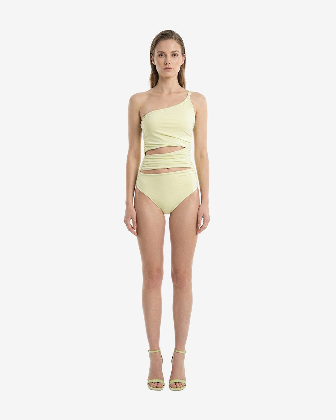 One shoulder with peekaboo front, the Ibiza swimsuit is not just another basic one piece