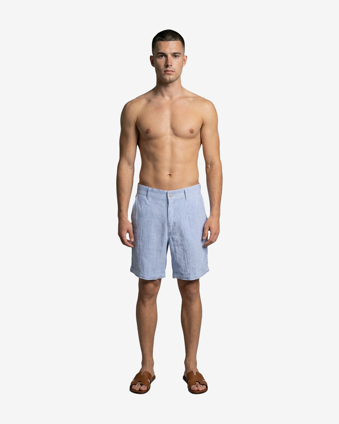 The Jakarta Short in blue stripe combines tropical elegance with practical comfort. Crafted from breathable, lightweight cotton, it features a refined waist with 4 belt loops, side and back pockets, making it a versatile essential in men’s shorts bali.