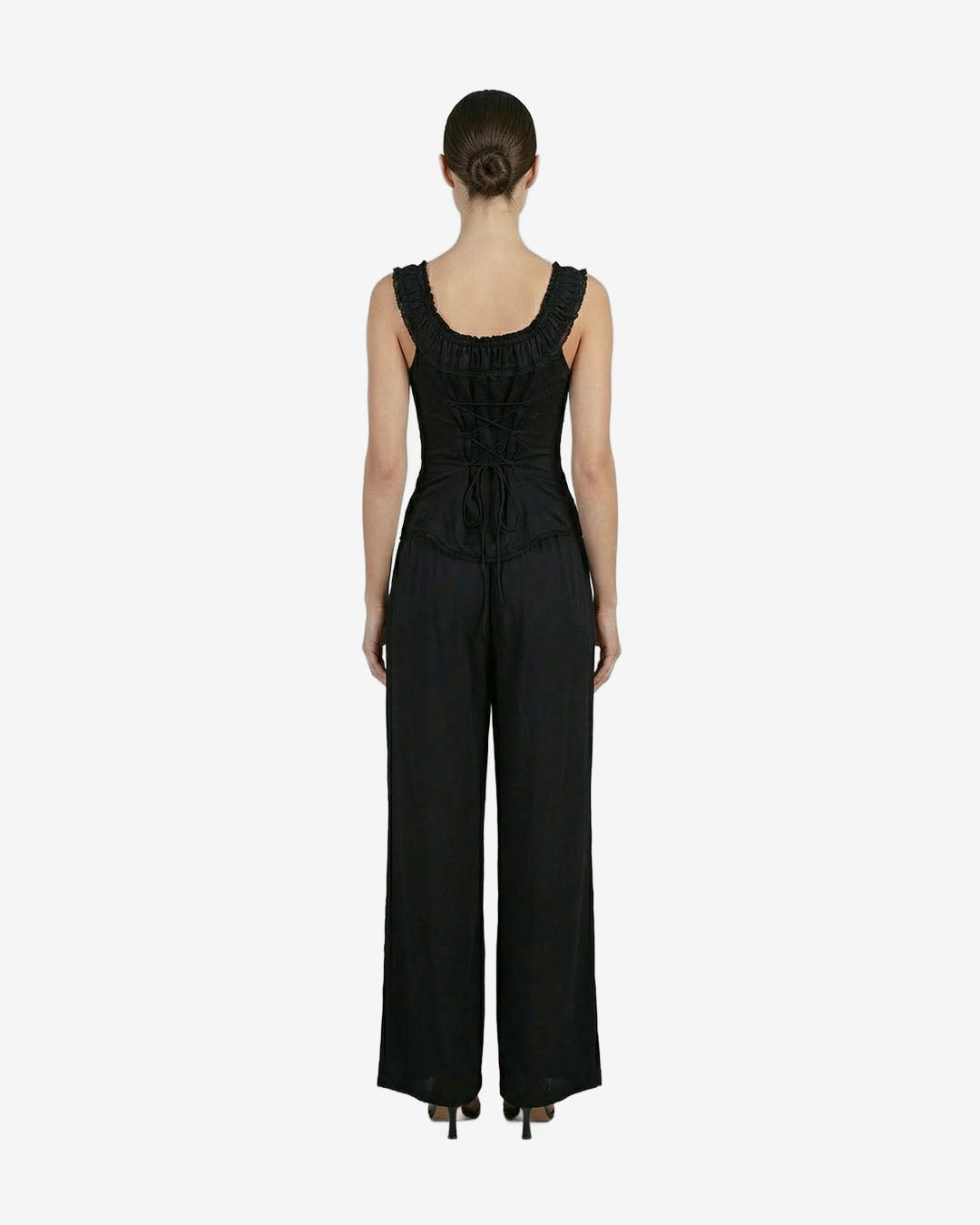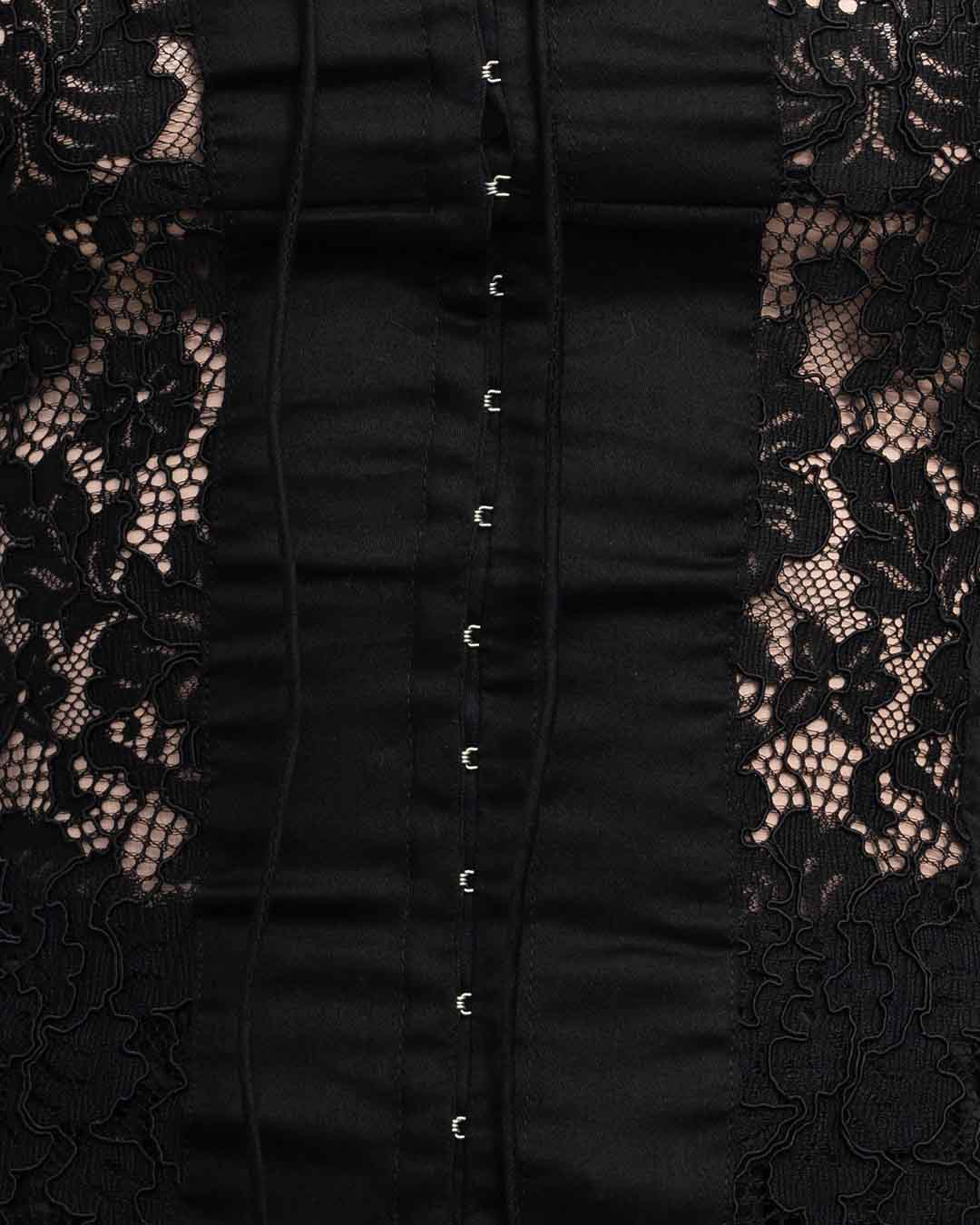 The JASPE corset top blends satiny viscose with delicate lace for a soft, fluid drape and timeless romance, making it a refined statement piece in women’s corset Bali collections.