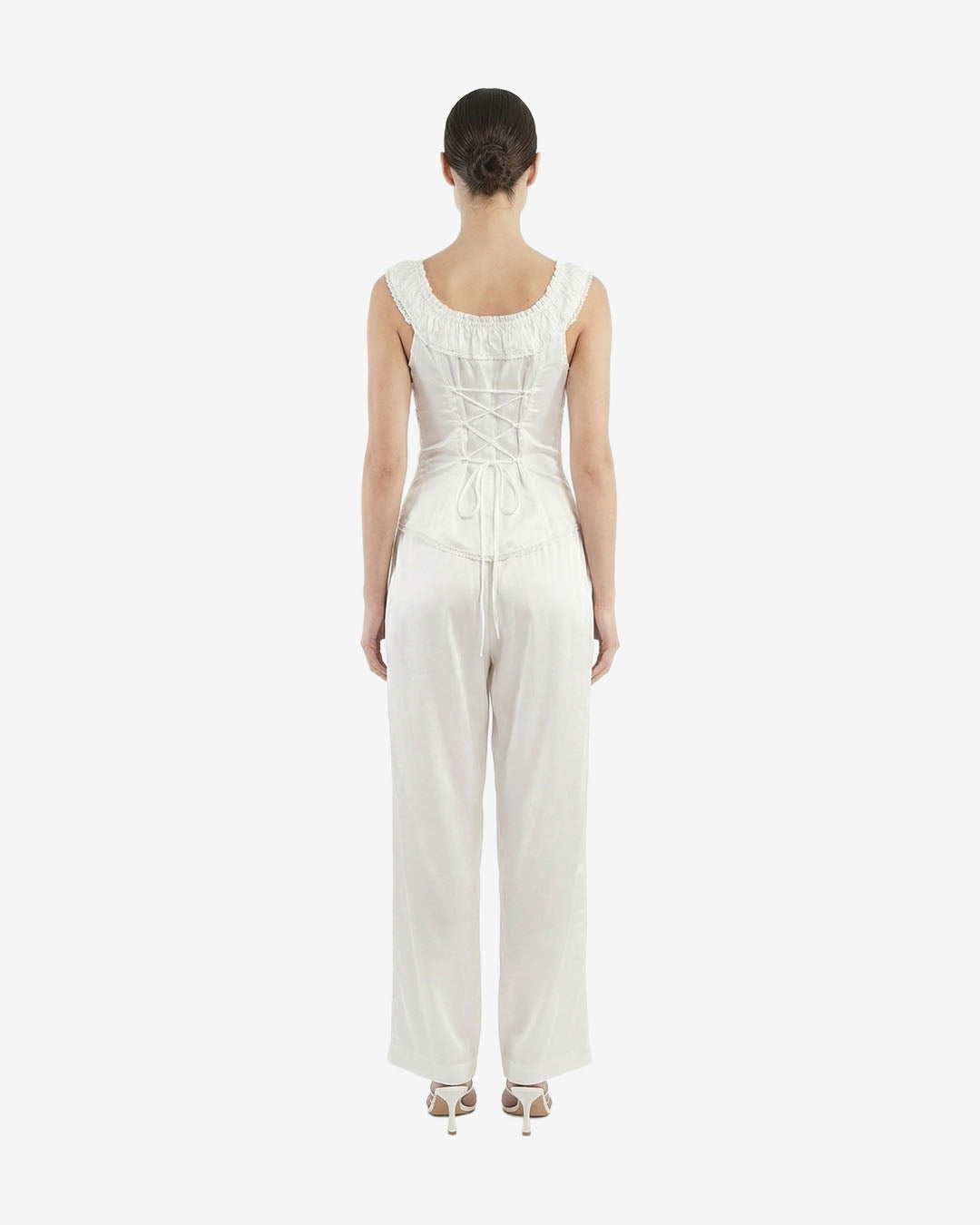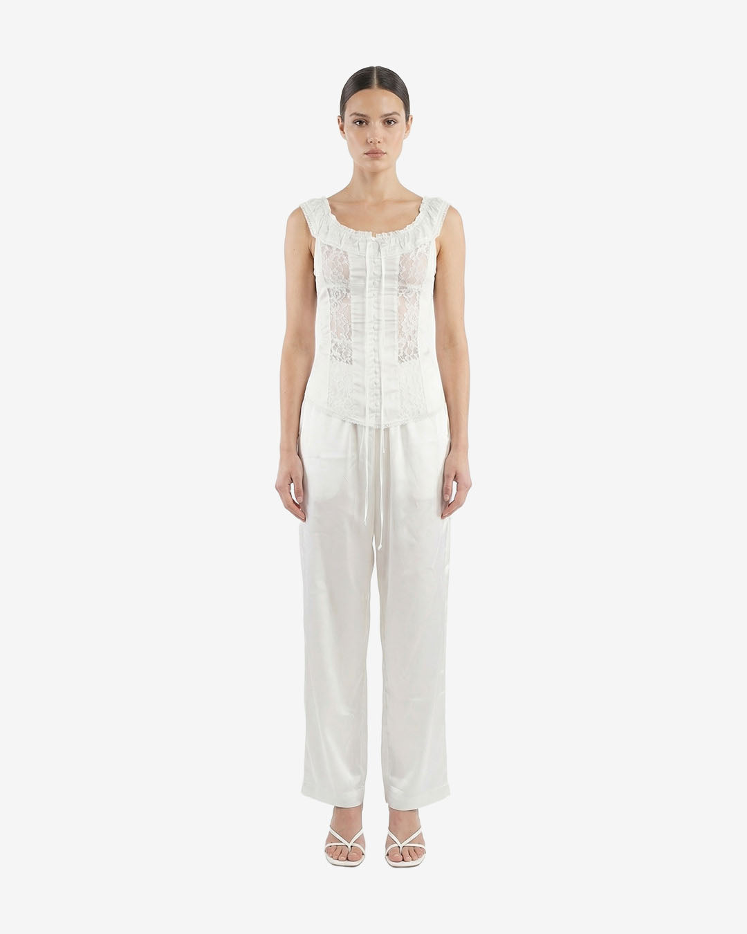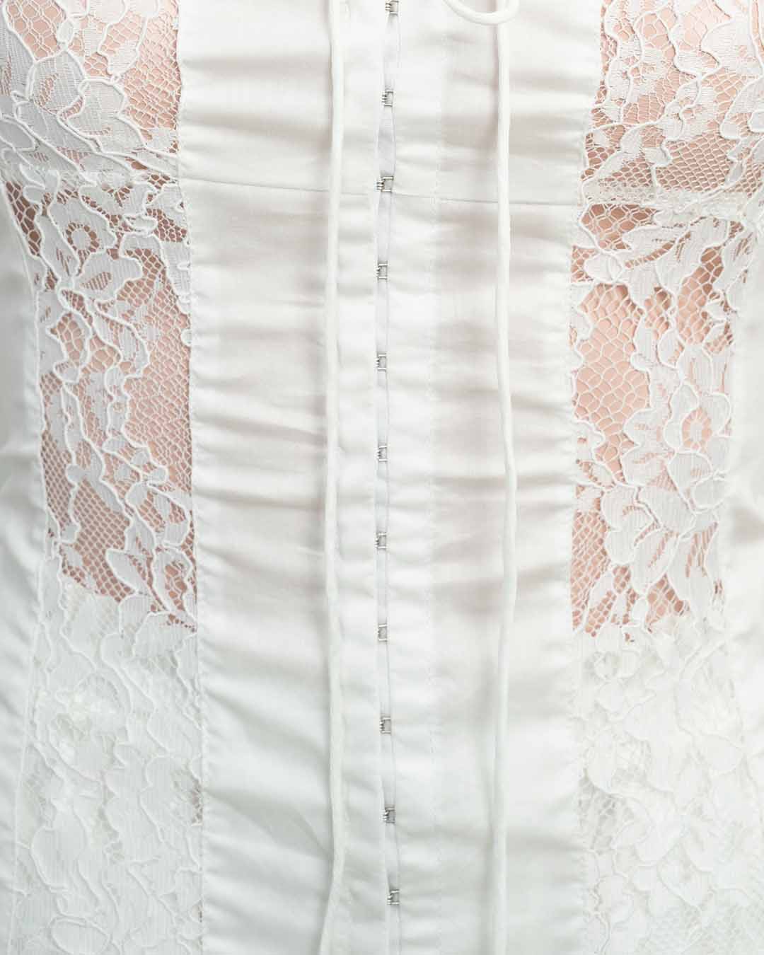 The JASPE corset top blends satiny viscose with delicate lace for a soft, fluid drape and timeless romance, making it a refined statement piece in women’s corset Bali collections.