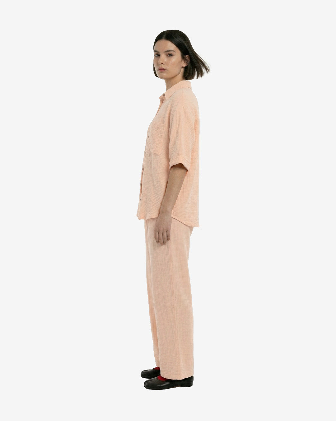 This set, crafted for loose comfort in breathable gauzy fabric, is the ultimate choice for hot days, travel, or relaxed weekends, making it a must-have in pajama Bali.