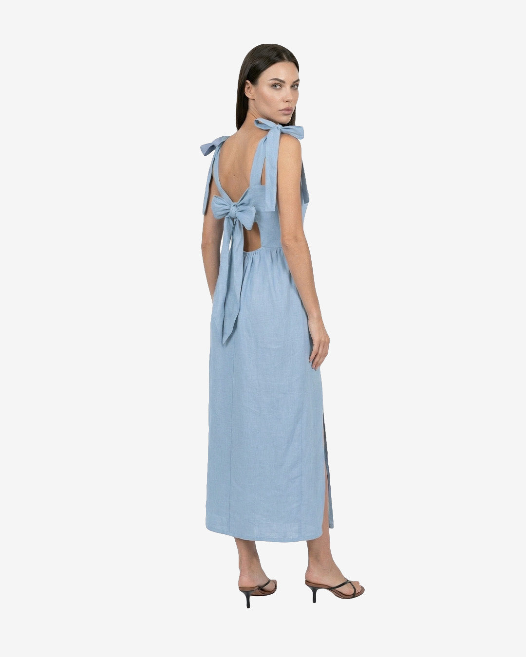 Black linen strapless dress with a bow, perfect for a beach vacation, but also for the office on hot summer days.The dress can be tied at the waist, so it is variable.
