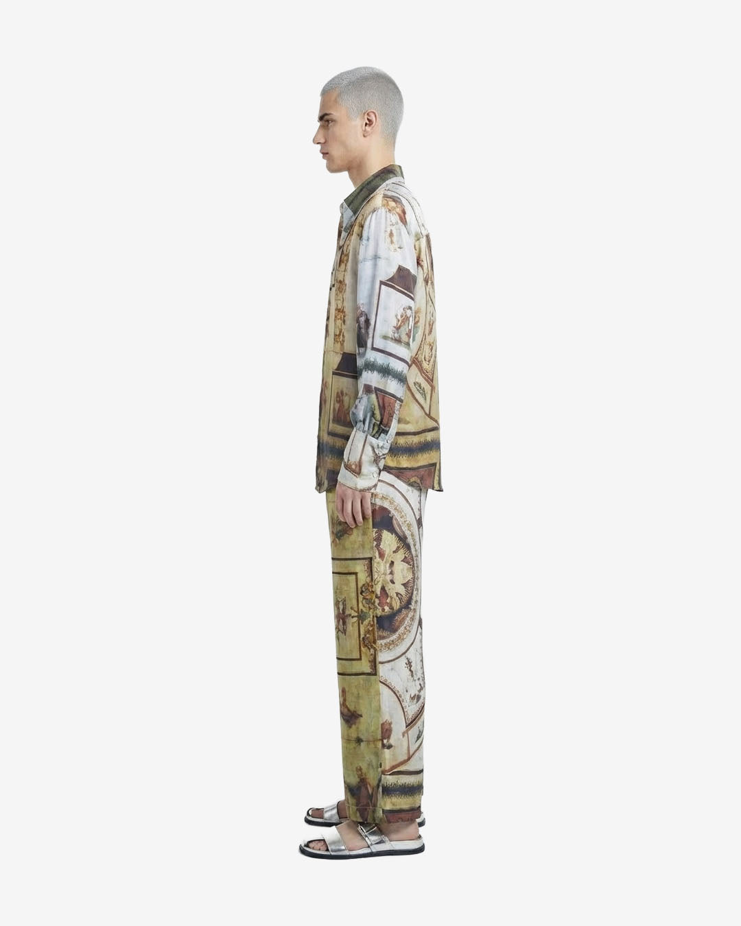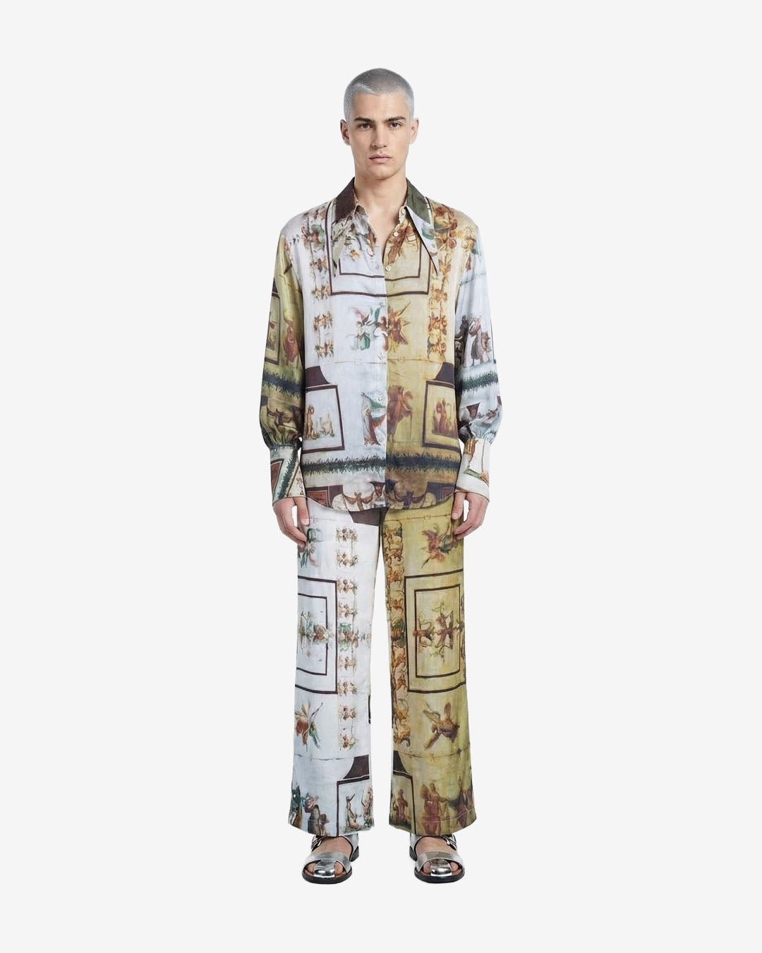 100% sustainable clothing. printed by using Eco-friendly ink that has been standardize in 100 oeko-tex and utilizing 100% woodline fabric. Made through sustainable sourcing and efficient manufacturing this garment not only enhace the vibrant. Colors and the richness of it's textures, but guarantees that every inch of it's creation has an ecological value.