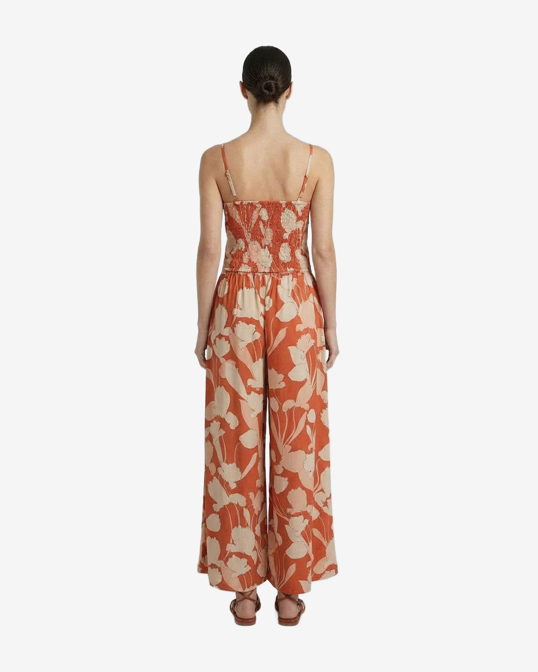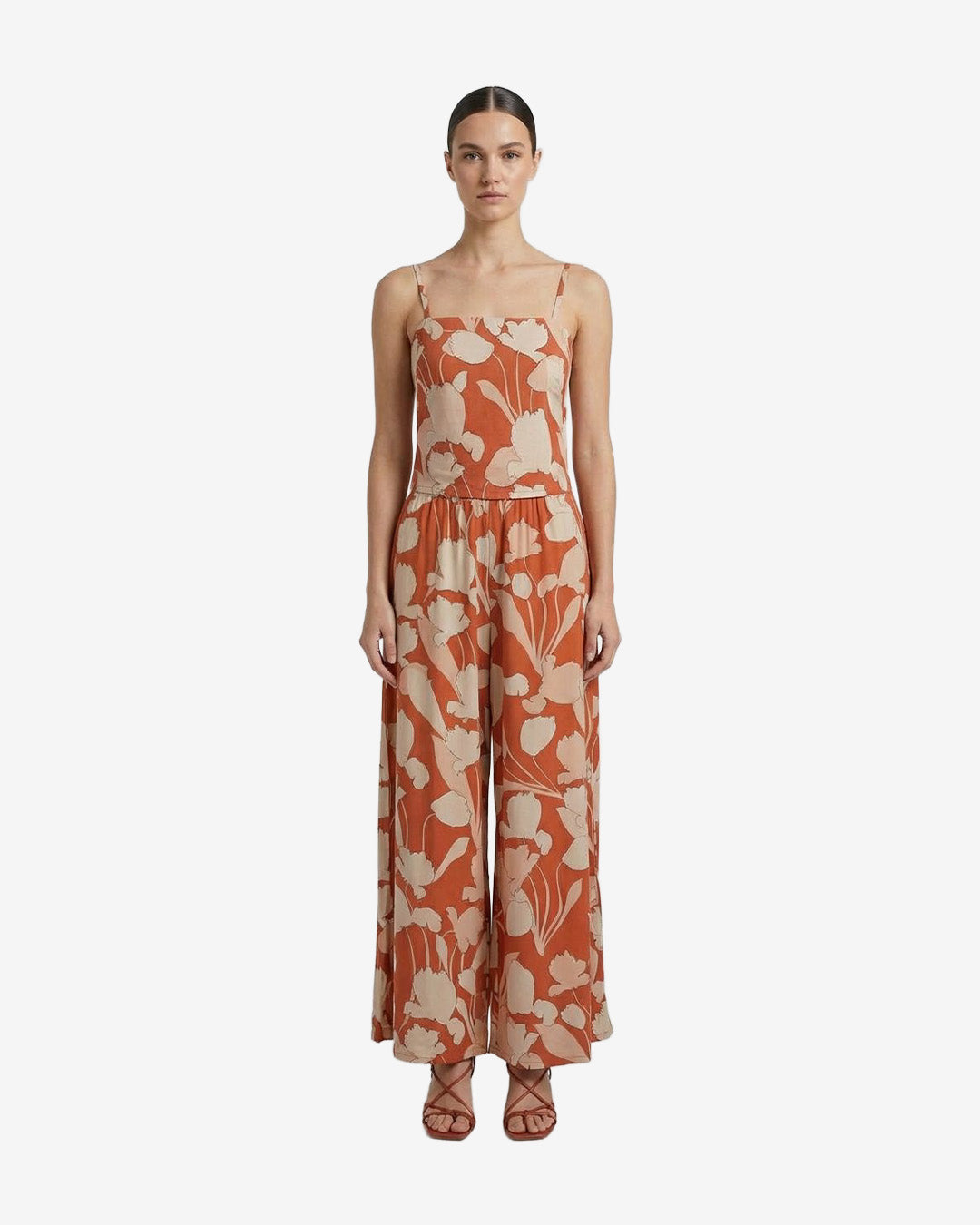 The Marcy Top in our new signature Florelle print will be a summer wardrobe staple. Made in hand printed rayon, this stylish, crop style top has an elastic back and adjustable straps to ensure a comfortable fit. Complete the summer look with our Elsa Pants and add the Luna Kimono to complete the summer vibe.