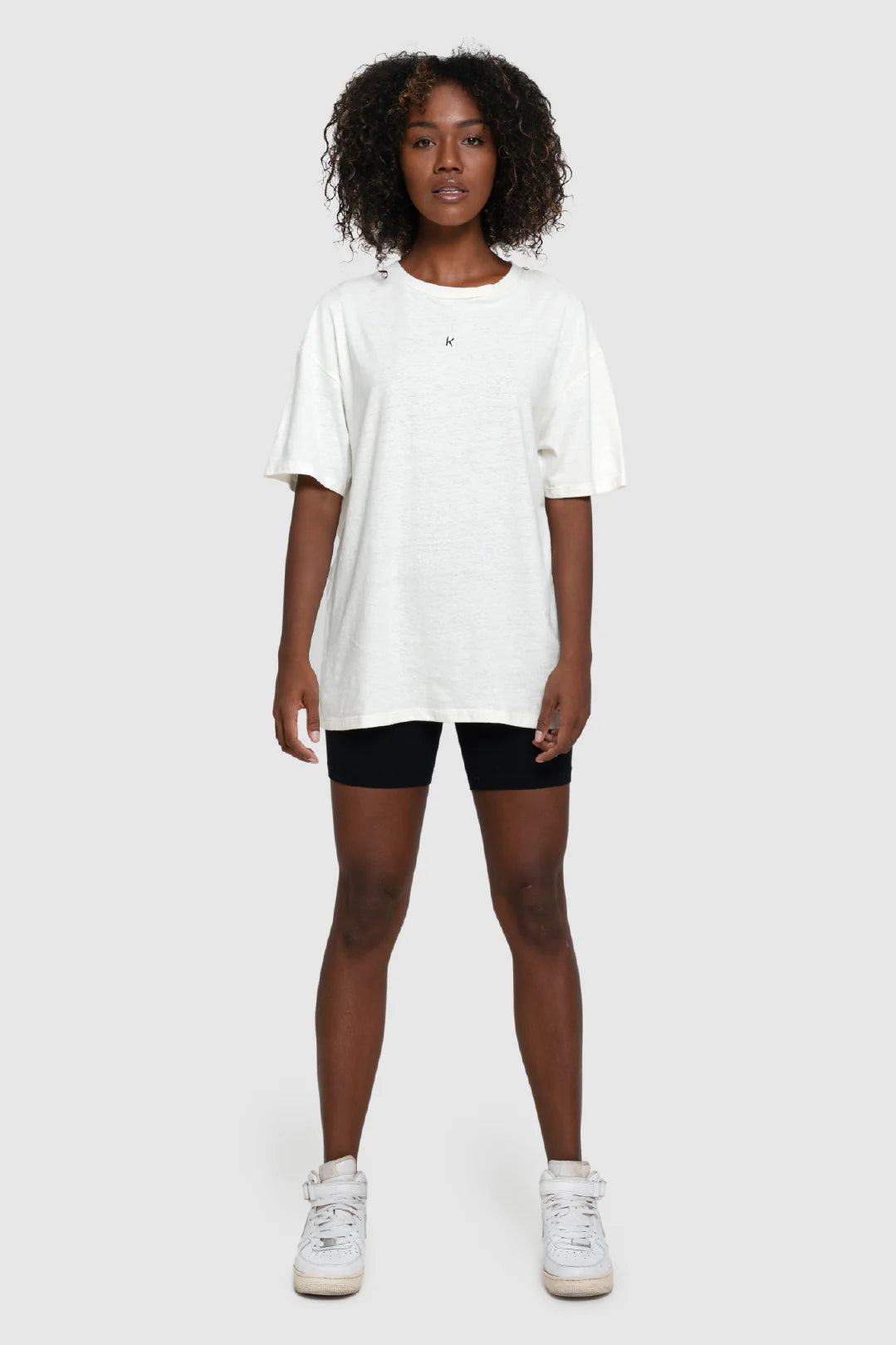 Our unisex hemp tee is made with a composition of Hemp and Organic cotton with an organic texture. Designed as a relaxed fit cut with semi dropped shoulders, raw cut hem detail from the side seams to the back and finished off with a contrast embroidered K at the centre front chest.