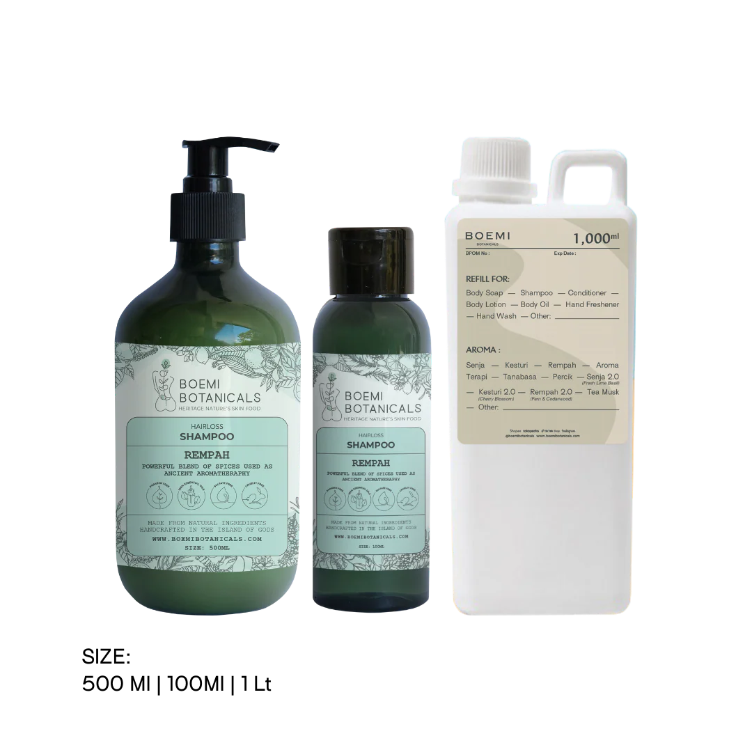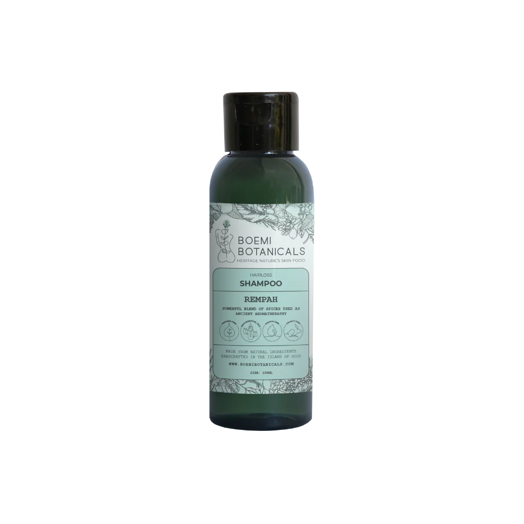 Discover the natural strength of BOEMI Botanicals Repair & Strengthening Natural Shampoo Rempah, a botanical shampoo crafted to nourish the scalp and help reduce hair fall. Made with gentle plant-based cleansers, it removes impurities effectively while maintaining the scalp’s natural balance. Enriched with ginseng, coffee, and aloe vera extracts, it helps nourish hair roots and improve the appearance of thicker, stronger strands. The Rempah scent combines warm, spiced notes of ginger, clove, and rosemary, offering a relaxing yet revitalizing experience for both scalp and mind.