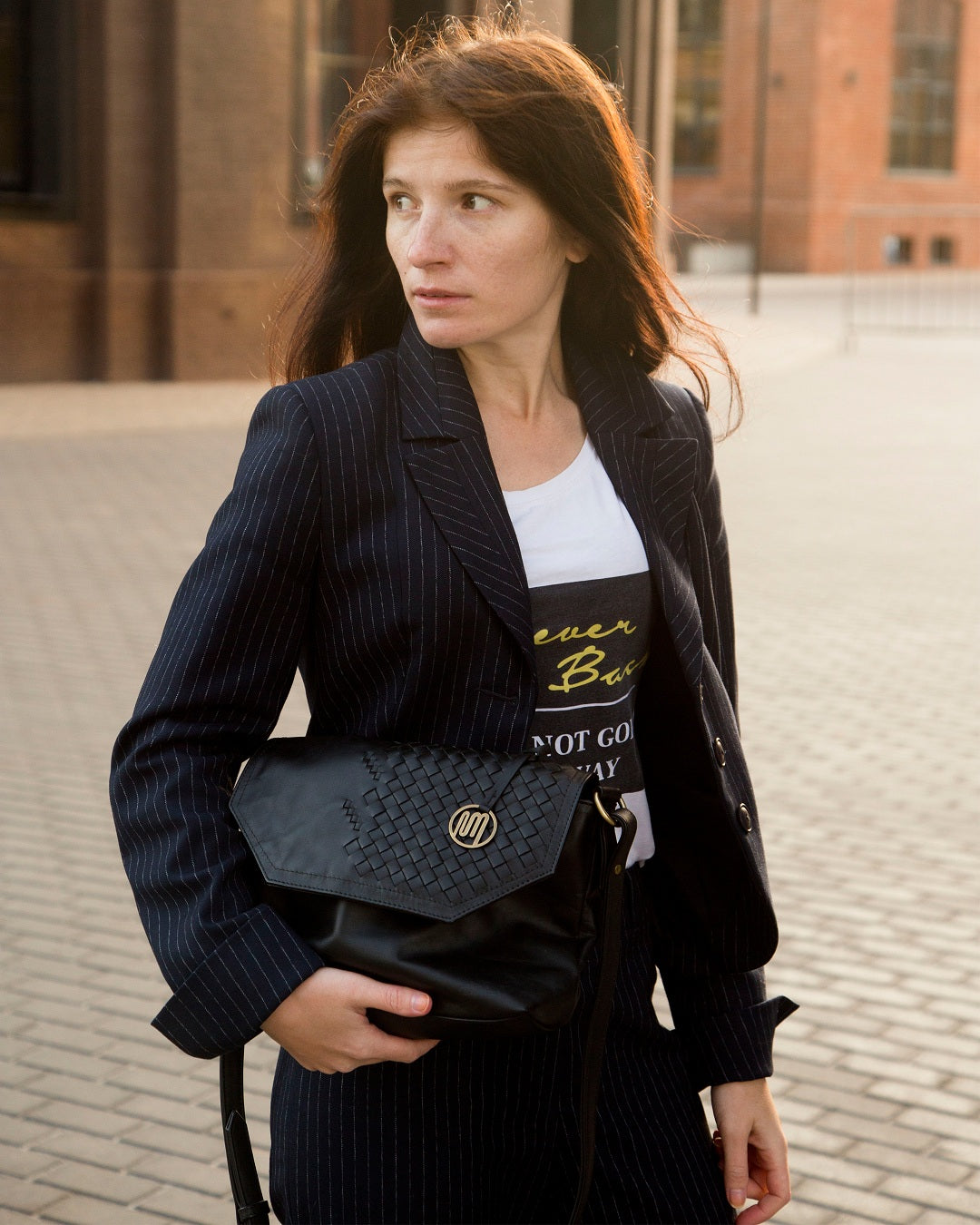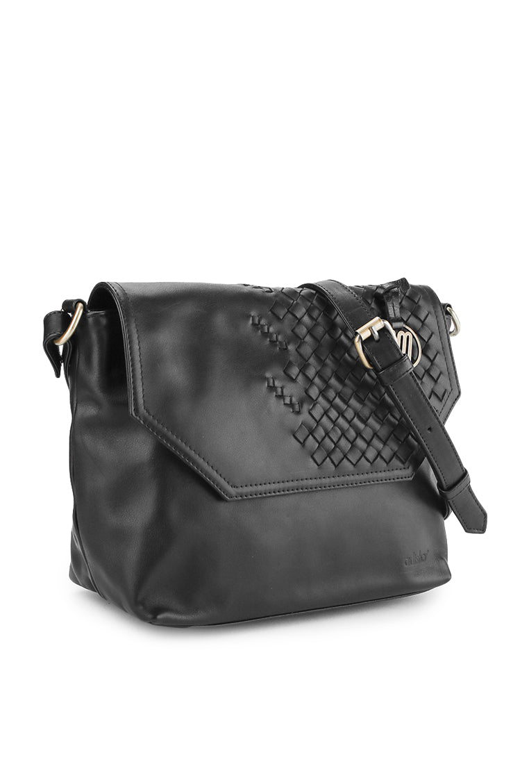 The SATYAVATI Bag No. II in Black with Woven Leather Details bag was made in the medium size so that you can keep your smartphone, wallet, and cosmetic inside. It has a hook with an adjustable strap. You can detach the strap and voila, you have made yourself an oversized clutch. Complete your casual look with the Satyavati bag and you are ready to rock the day. The Satyavati bag can be your everyday companion for attending any occasions such as watching a movie at the theatre, hanging out at the park, cafe, or coffee shop, or chilling out with friends. The SATYAVATI Bag No. II with Woven Leather Details is made of soft Nappa leather in a black color with batik lining ornament in its interior.