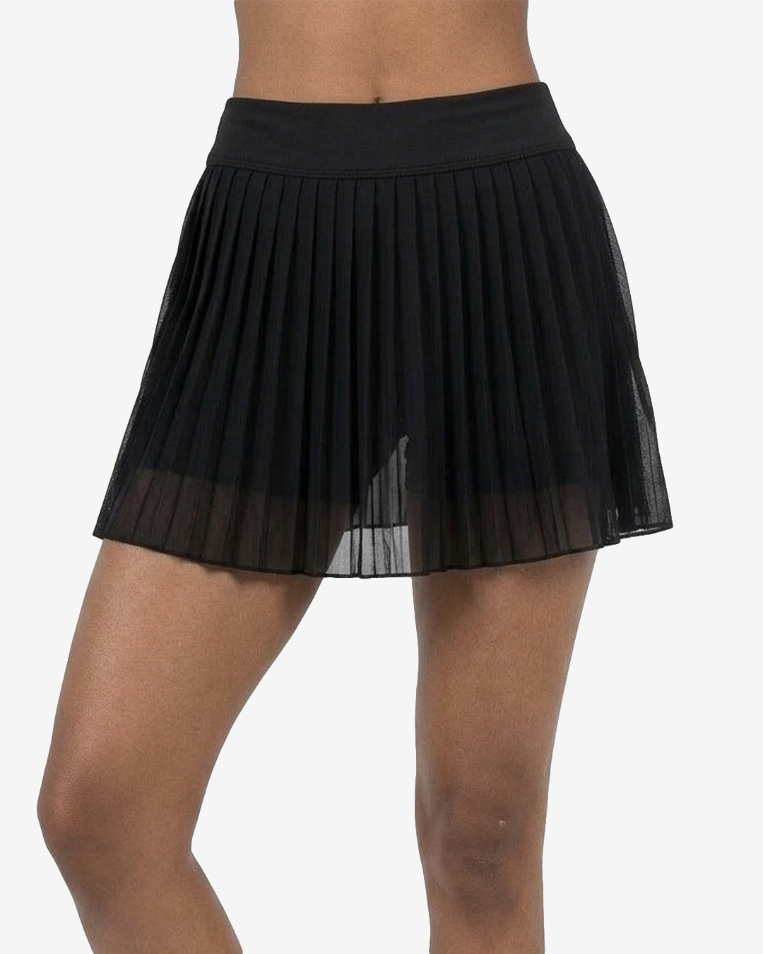 Veila Skirt is movement shaped into form. The lightweight outer layer crafted from delicate mesh, reminiscent of a veil, creates an airy sense of depth, flowing softly with every step. Fine, precise pleats add dynamic motion while preserving a clean silhouette and balanced proportions. Veila is about transparency, structure, and confidence in every step.