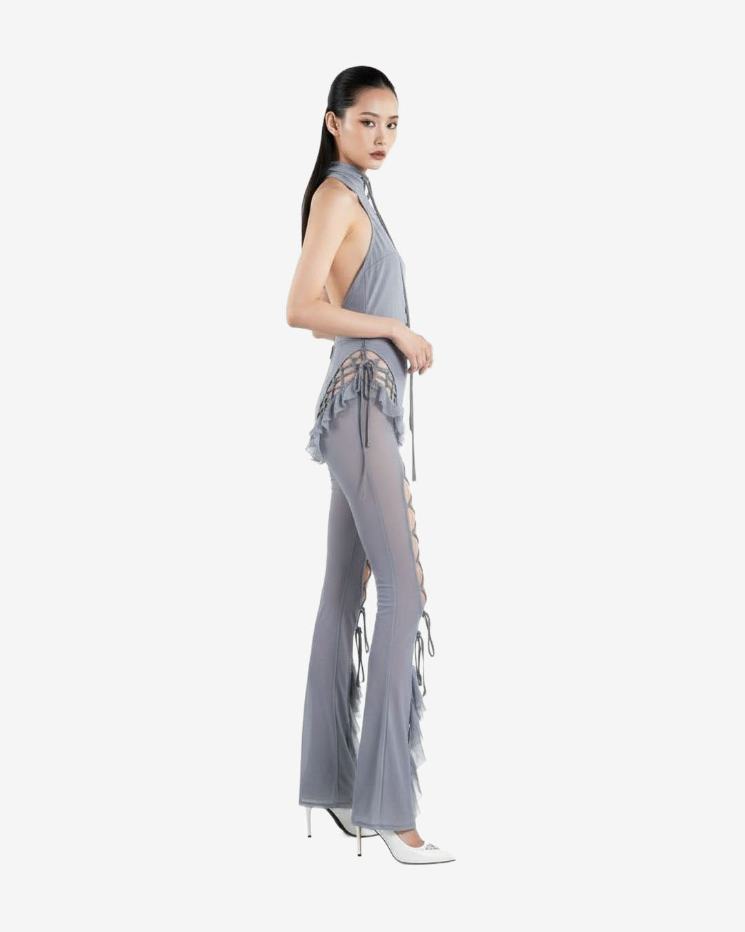 Introducing the Sinful Romance Jumpsuit, a bold one-piece with a form-fitting silhouette, lace-up detailing at the front, and daring cutouts at the back that enhance and sculpt your curves. Finished with ruffled accents along the seams for a touch of romance and movement, this design stands out within our one-piece jumpsuit Bali collection, delivering a confident, statement-making look for elevated resort and evening wear.