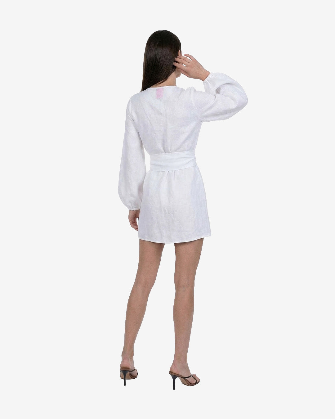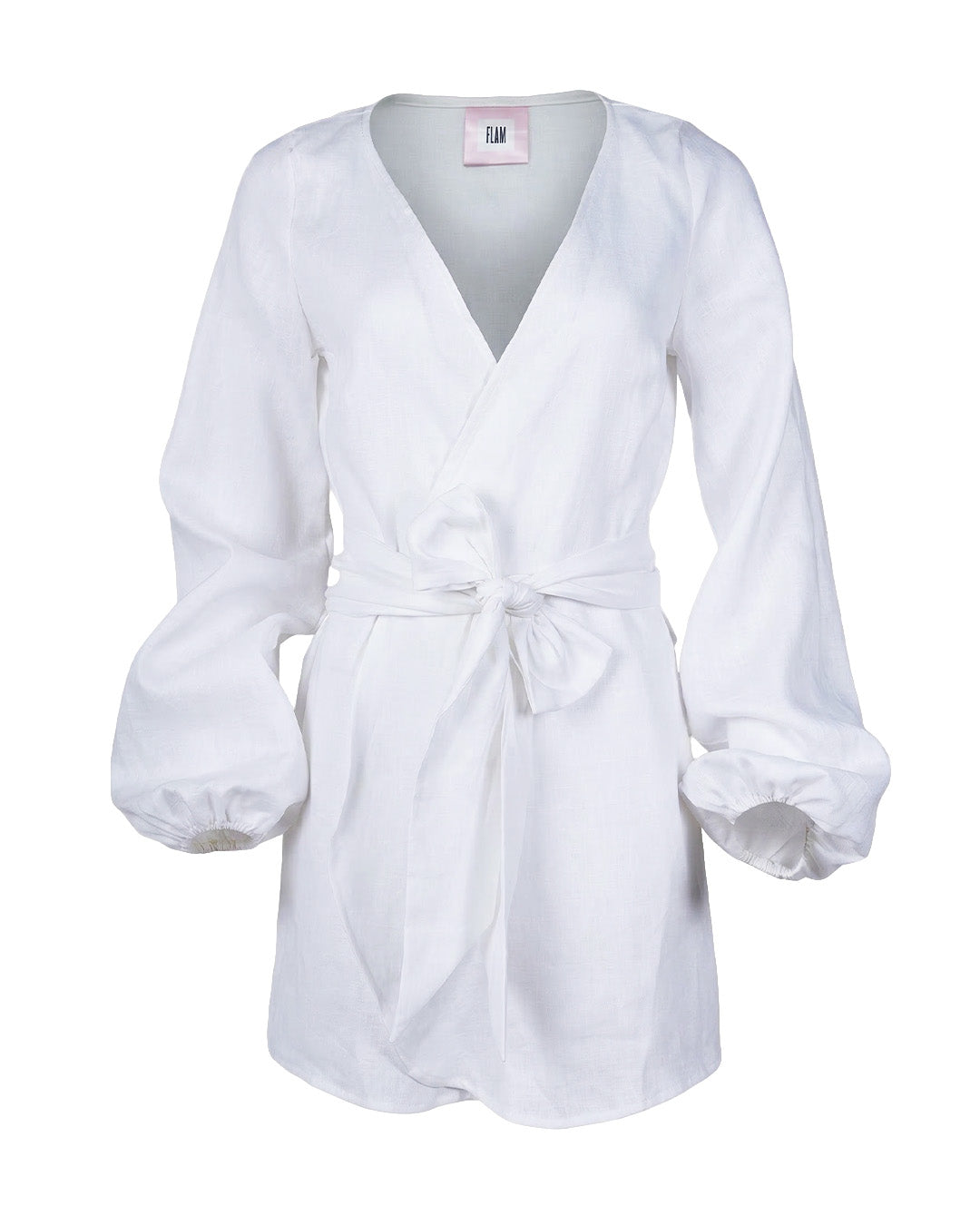 White linen wrap dress